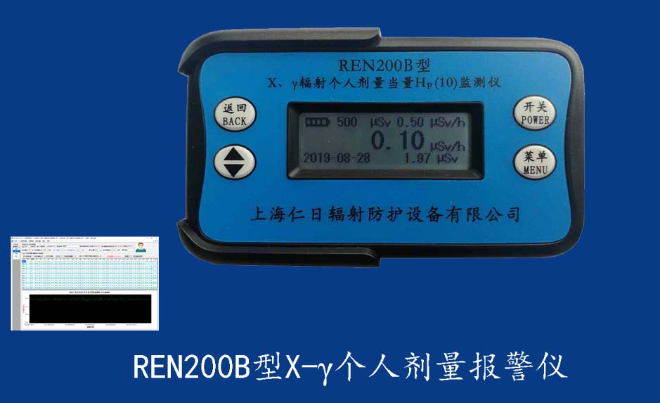 REN200A型X、γ輻射個人劑量當量HP(10)監(jiān)測儀(簡稱:個人劑量報警儀)內(nèi)置高靈敏度蓋格計數(shù)管為探測器,主要用來監(jiān)測各種放射性工作場所的X、γ以及硬β射線的輻射,具有響應快,測量范圍寬的特點。能顯示工作場所的劑量當量率和累積劑量,更換電池時,日期及累積數(shù)據(jù)能永久保存。可選配RenRiPersonal個人劑量管理軟件,該軟件可存儲多個人的歷史數(shù)據(jù),能記錄日累積、月累積、年累積、輻照時長、計算平均劑量率、扣除或不扣除本底輻射,且以文字和圖譜的方式展現(xiàn)數(shù)據(jù)。廣泛應用于核電站、加速器、鋼鐵、化工、同位素應用、工業(yè)X、γ無損探傷、放射醫(yī)療、鈷源治療、γ輻照、放射性實驗室、核設(shè)施周圍環(huán)境監(jiān)測等領(lǐng)域中的工作人員進行個人安全